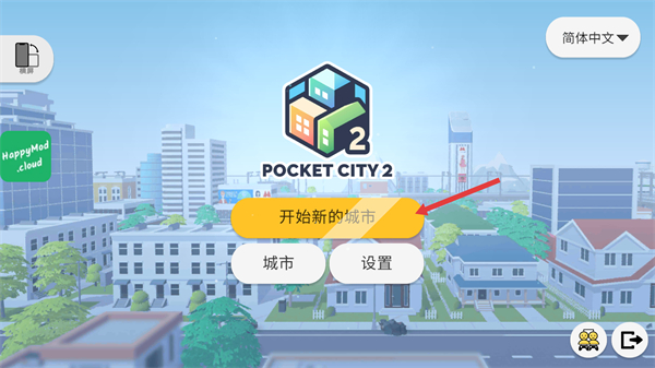 1、进入【袖珍城市2】主界面,点击【开始新的城市】按钮,开启你的城市建设之旅,从零打造繁荣都市。
