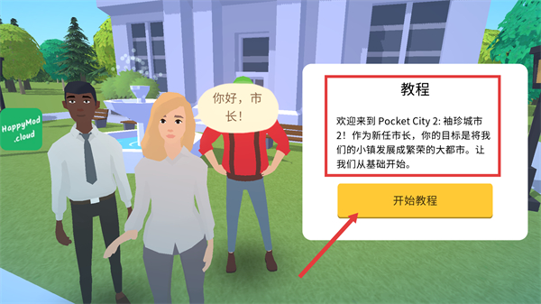 2、在教程界面点击【开始教程】按钮,跟随指引学习城市建设基础操作,快速掌握游戏核心玩法。