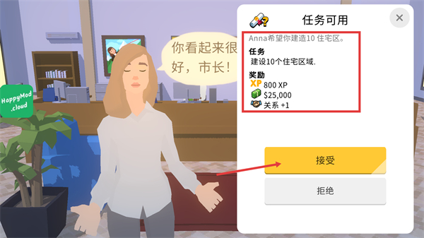 4、接受【Anna】的任务建设10个住宅区域,完成可获【800XP】【25000】元和关系+1奖励推动发展。