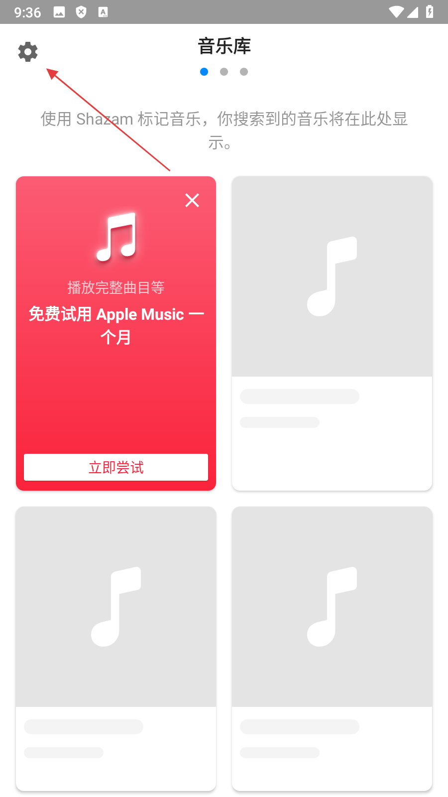 2、在音乐库页面,点击【左上角设置图标】,进入设置页面。