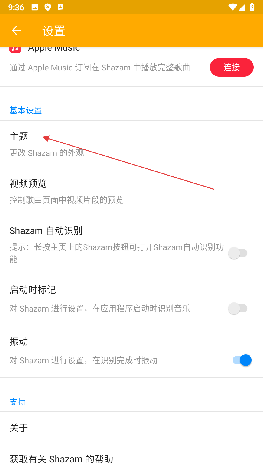 3、在设置页面,点击【主题】,弹出选择主题对话框。
