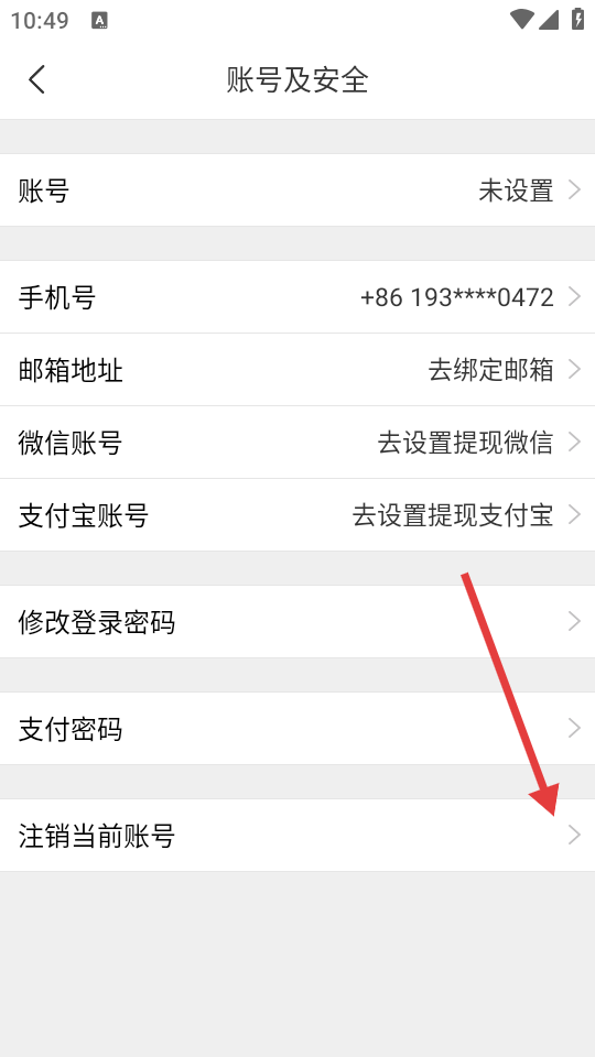 3、在账号及安全页面中,点击【注销当前账号】选项以进入账号注销说明页面。