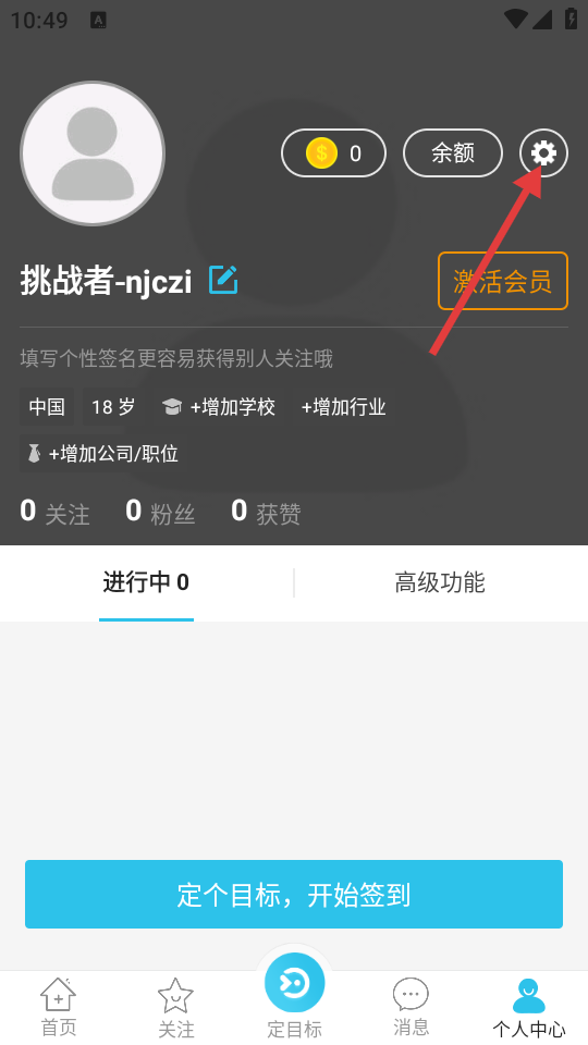 1、在个人中心页面中,点击设置图标以进入设置界面。