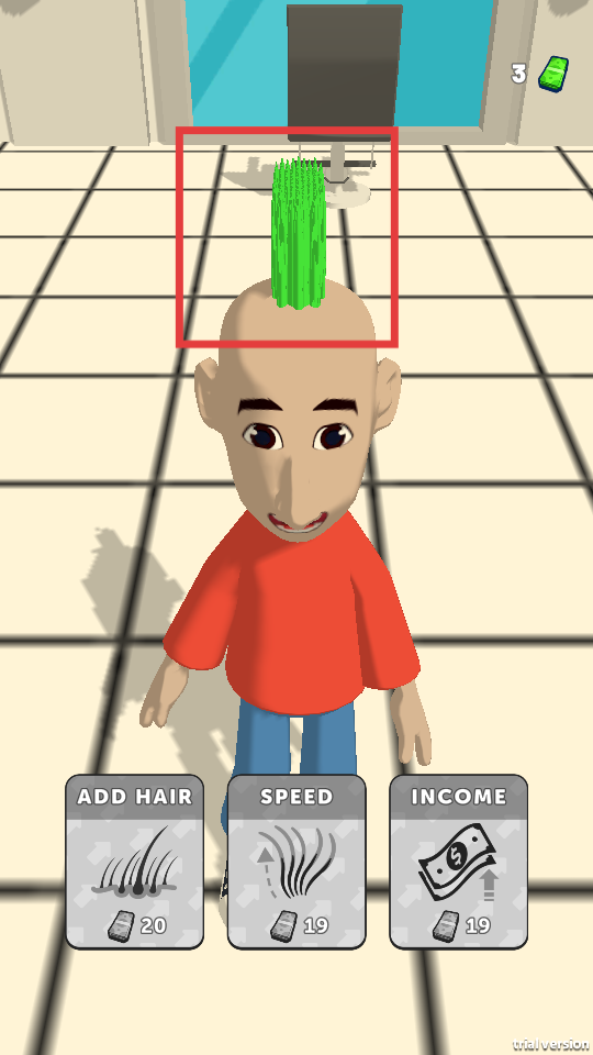 2、游戏中角色的头发会自动生长,积累资源(绿色货币)。