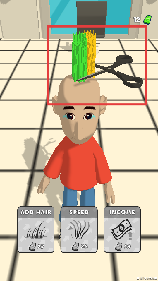 4、当头发生长到一定程度,可使用剪刀等工具进行理发操作,获取更多资源,持续升级和经营理发业务。