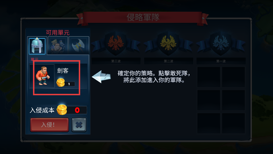 4、选择剑客加入军队,确定战斗策略,提升军队战力,推进游戏进程。