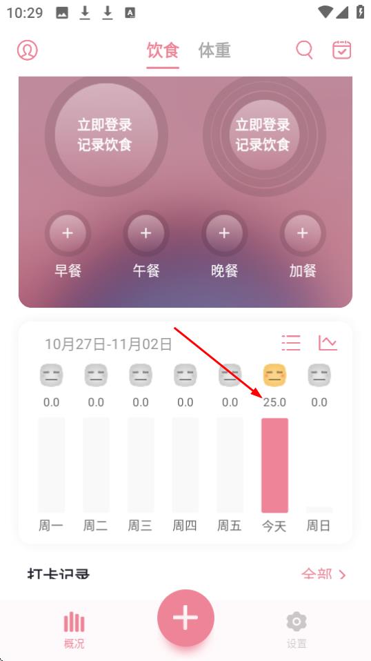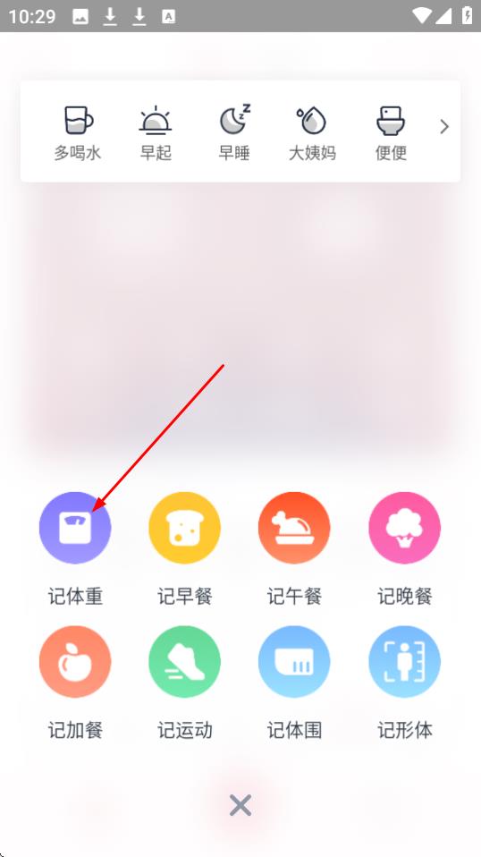 1、点【+】,选【记体重/记早餐】等功能快速记录。