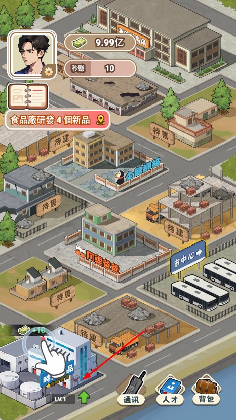 2、完成建筑后秒赚为【10】,解锁【食品厂-研发-4个新品】任务,推进研发。
