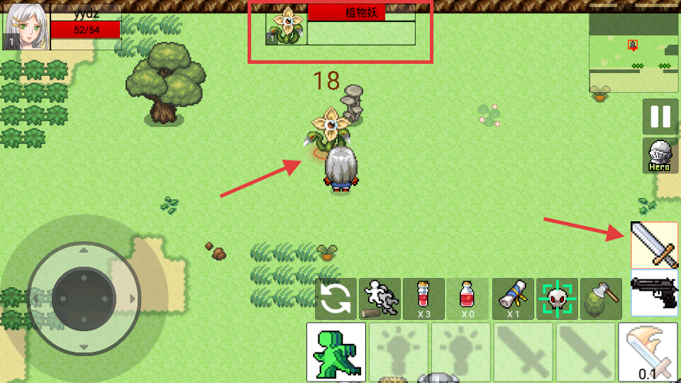 4、战斗遇【植物妖】,切换【剑】攻击,消灭怪物积资源,促角色养成。