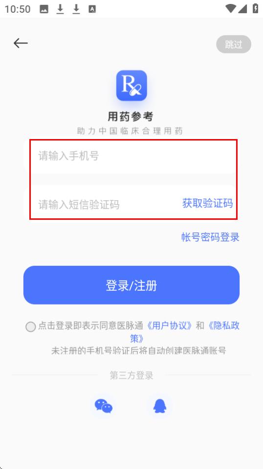 4、在【请输入手机号】【请输入短信验证码】处填写信息,点击【获取验证码】后点击【登录、注册】。