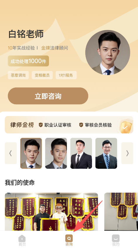 1、律师展示直观,律师金榜与顾问介绍清晰,用户选择律师便捷,法律咨询匹配高效。