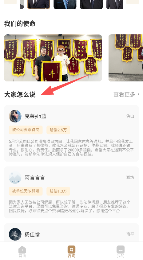 2、评价板块真实,大家怎么说的用户评价详细,劳动纠纷解决效果可查,用户决策有据。
