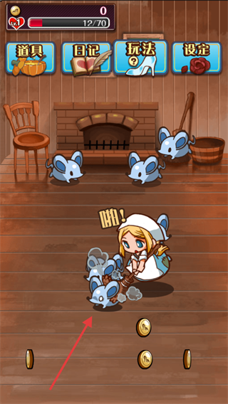 2、操控灰姑娘击打【老鼠】,获取【硬币】积累爱心,为进化成公主做准备。