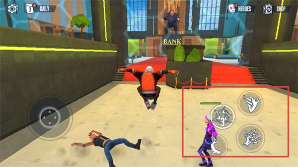 2、利用左侧方向键操控角色移动,在城市场景中与敌人交战,熟悉战斗操作。