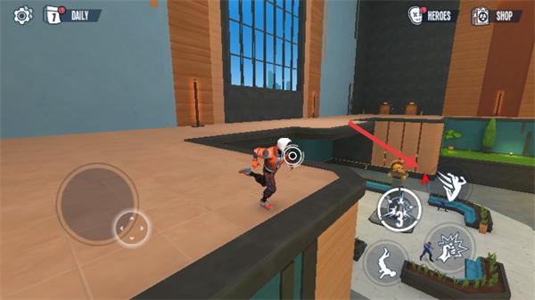 3、在高台区域,跟随【红色箭头指引】移动,锁定目标后释放技能发起精准攻击。