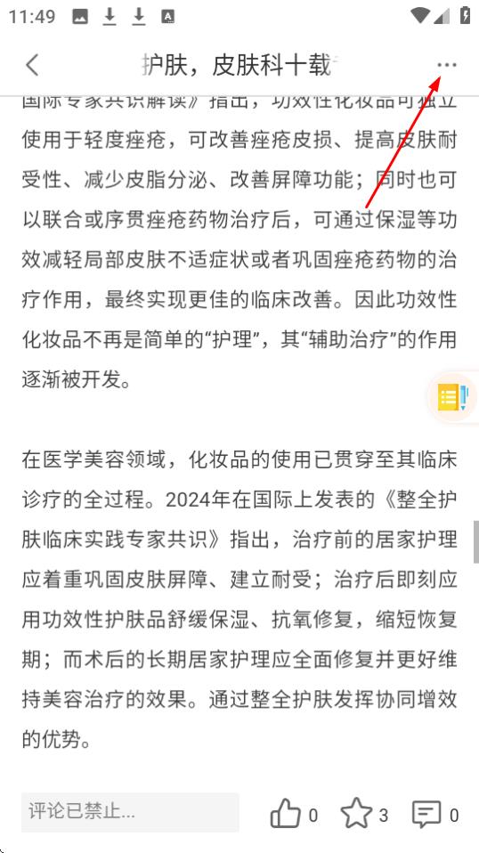 2、在【医学护肤】板块的【化妆品资讯】中,点击【科学护肤,皮肤科十载专业历程】文章可查看详细内容。