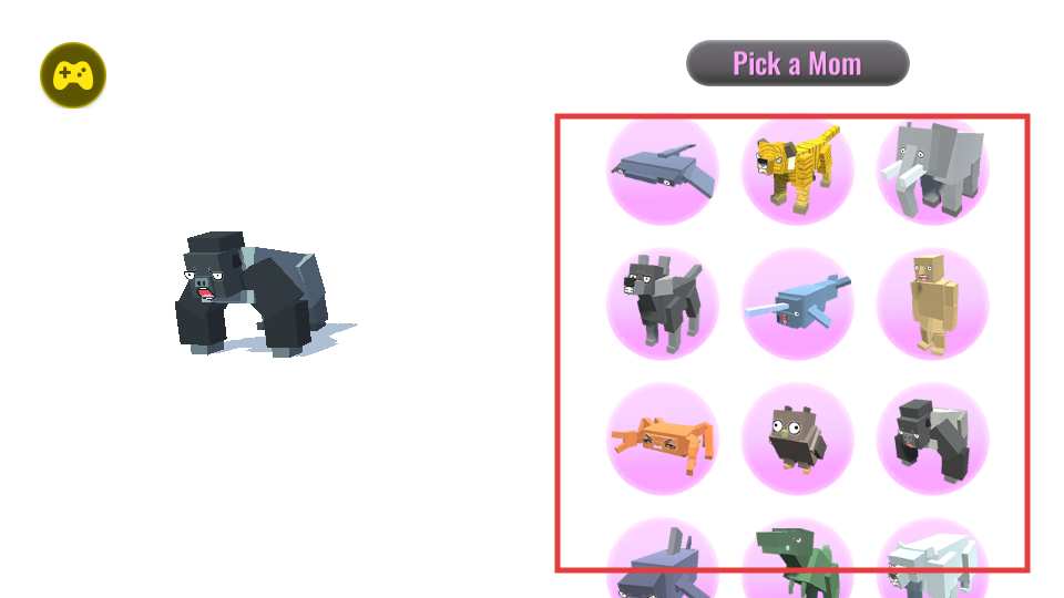 3、再选择“爸爸”动物(如鲨鱼、老虎、羊等),通过杂交生成独特的混合动物