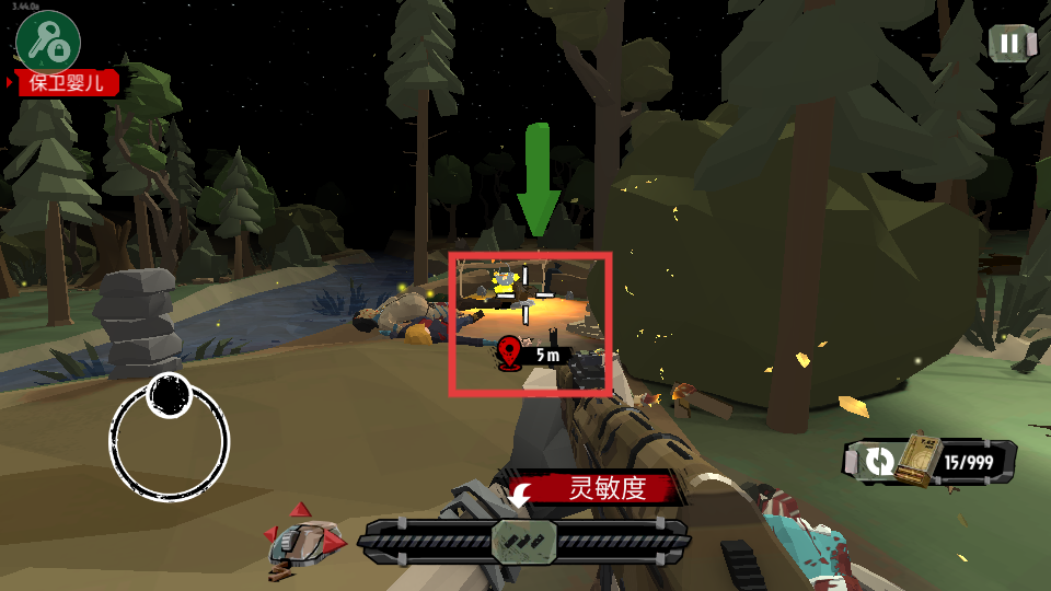 2、接到【保卫婴儿】任务后,前往婴儿所在位置(5m处),消灭周围威胁保护婴儿。