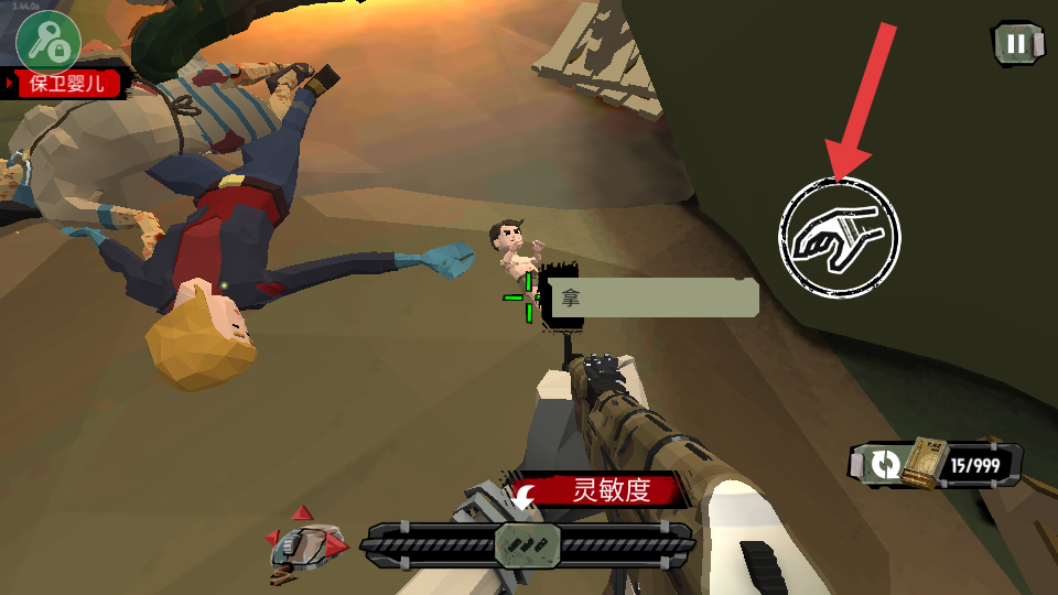 3、靠近婴儿后,点击右侧交互图标,执行【拿】的操作,将婴儿带在身边。