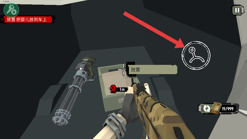 4、找到车辆后,点击右侧交互图标,执行【放置】操作,将婴儿放到车上,完成任务。