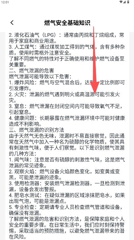 3、进入详情页上下滑动阅读完整的燃气安全知识。