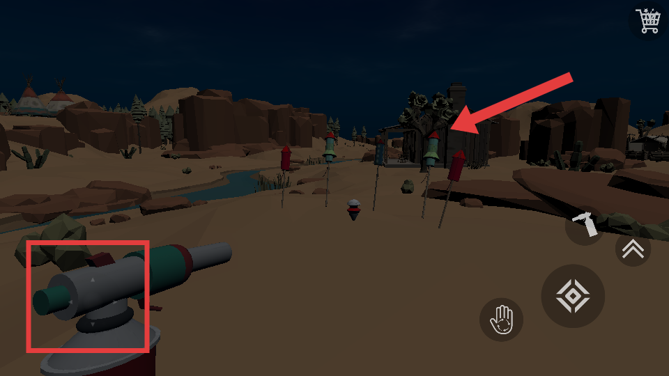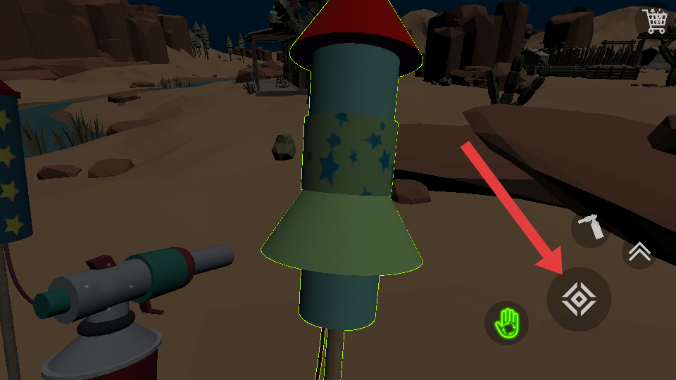 2、操作界面中的烟花发射装置,瞄准场景中的烟花,准备进行点燃操作。