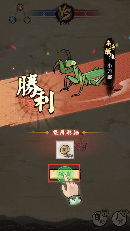 3、操控螳螂队伍战斗,利用不同螳螂的技能,消灭敌人,推进关卡进程。