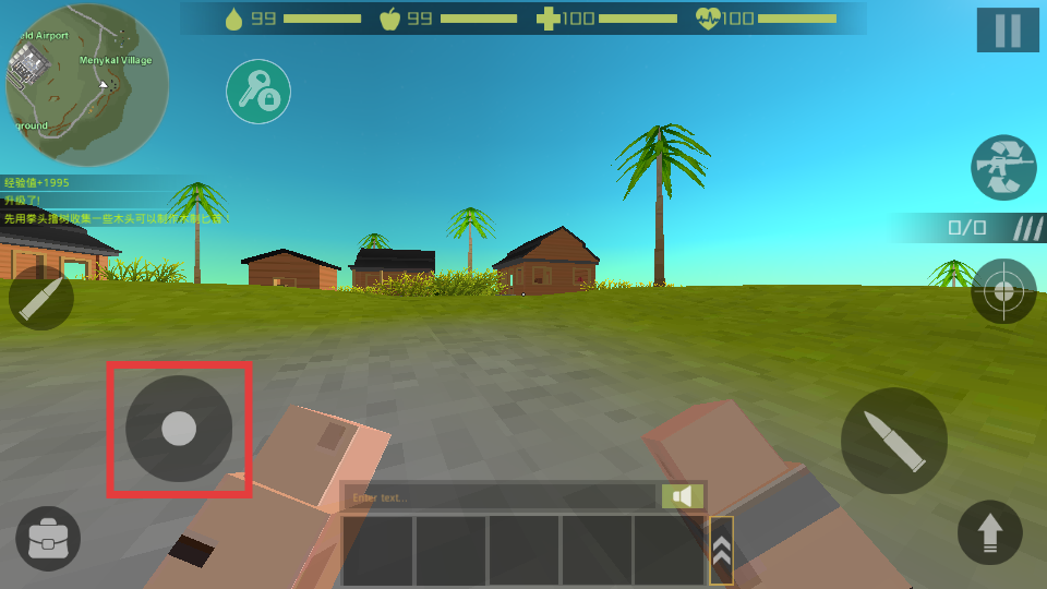 2、进入游戏后,通过左侧移动摇杆控制角色移动,探索海岛场景。