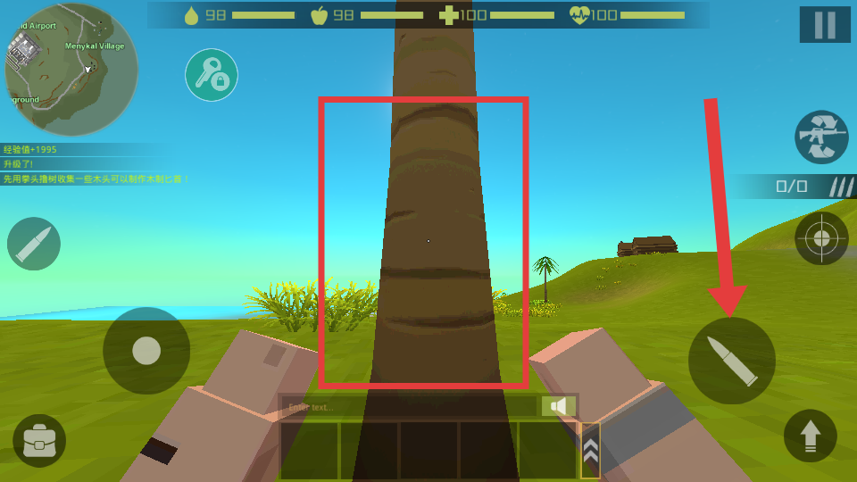 3、靠近树木等资源,点击右侧攻击图标,对树木进行砍伐以获取资源。