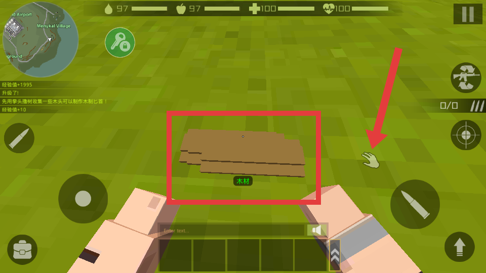 4、砍伐树木后,点击右侧交互图标,收集掉落的【木材】资源,用于后续制作或升级。