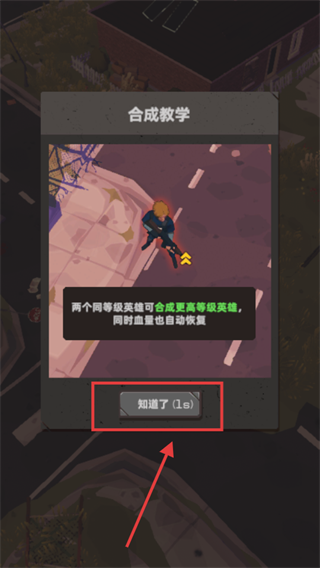 1、学习同等级英雄合成回血规则,点击【知道了】,进入实战操作阶段。