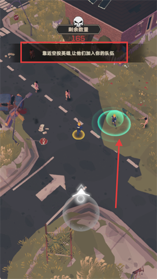 2、关注剩余僵尸数【165】,优先靠近绿圈空投英雄,扩充队伍增强战力。