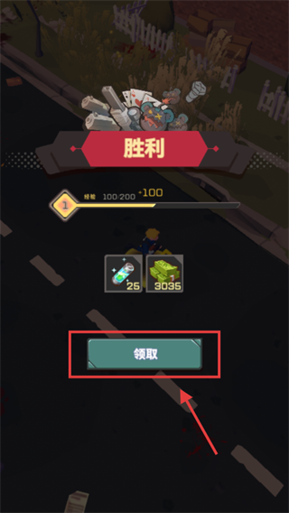 4、胜利后点击【领取】,获经验、【25】道具、【3035】金钱,强化队伍实力。