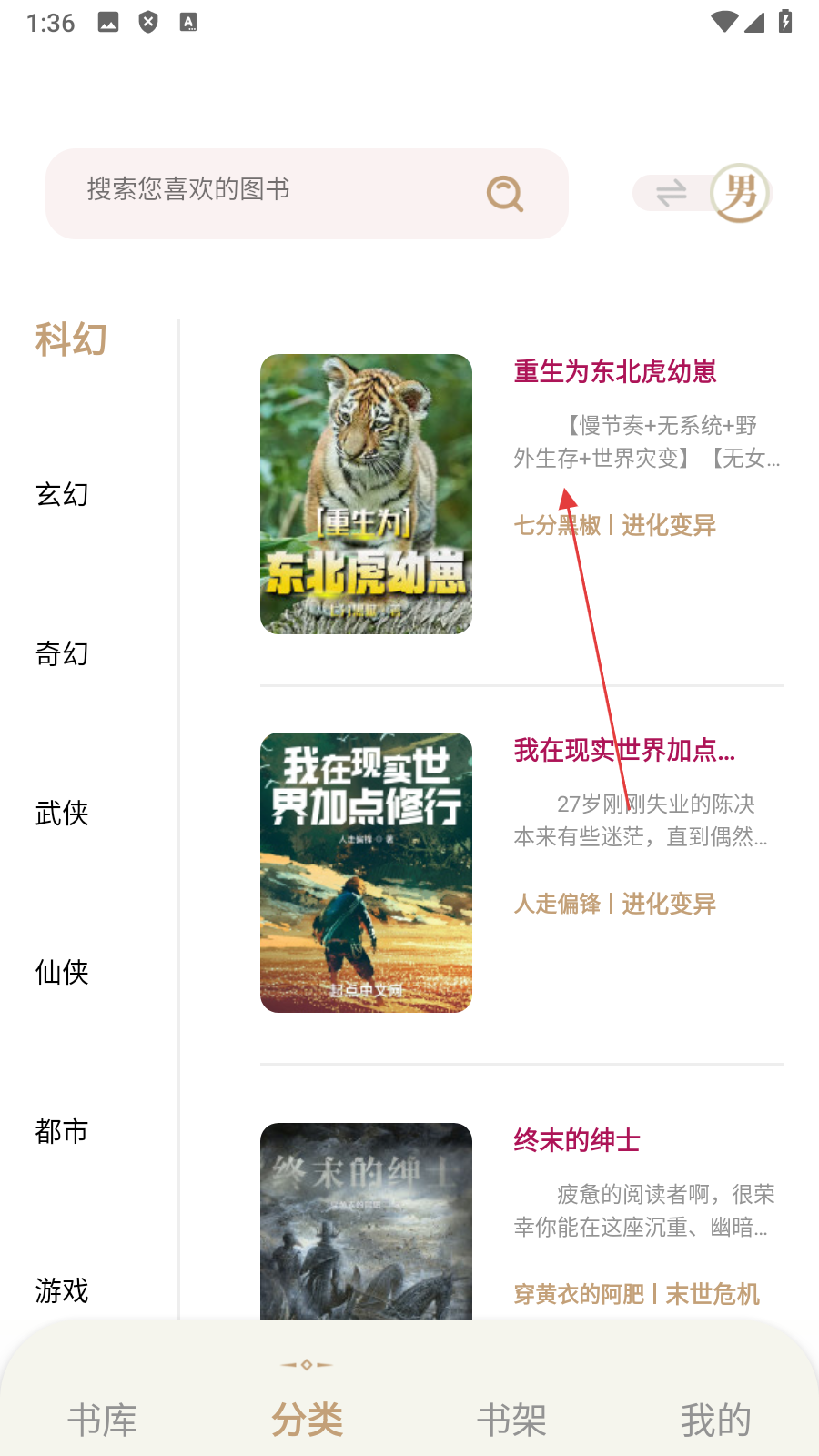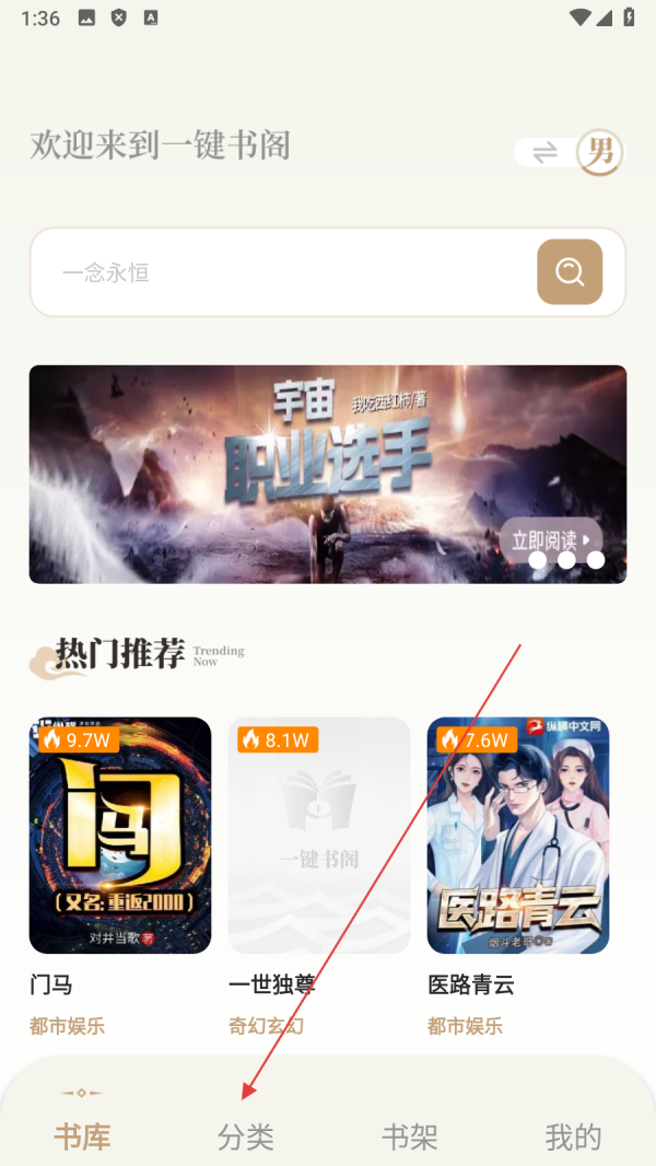 2、在书籍分类页面,点击【目标书籍分类】,进入书籍搜索页面。