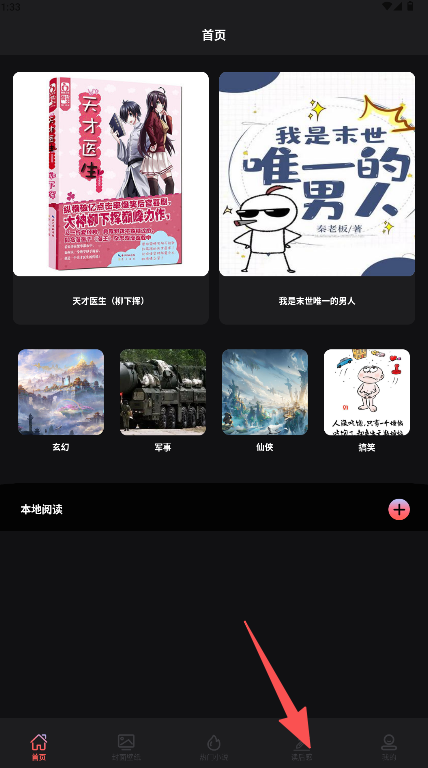 1、首页推荐位突出展示《天才医生》等热门作品,帮助用户快速发现高质量阅读内容。