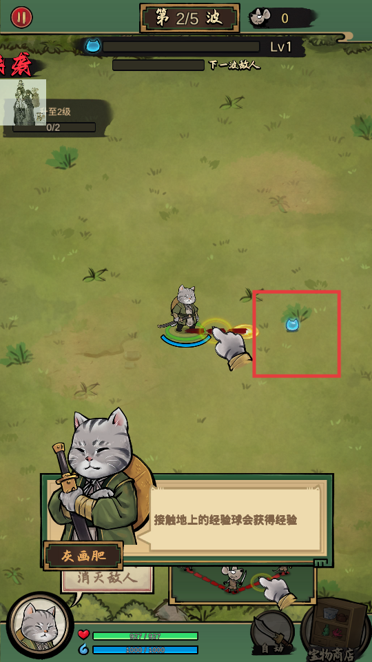 4、接触地上的经验球获取经验,为升级做准备,继续推进关卡。