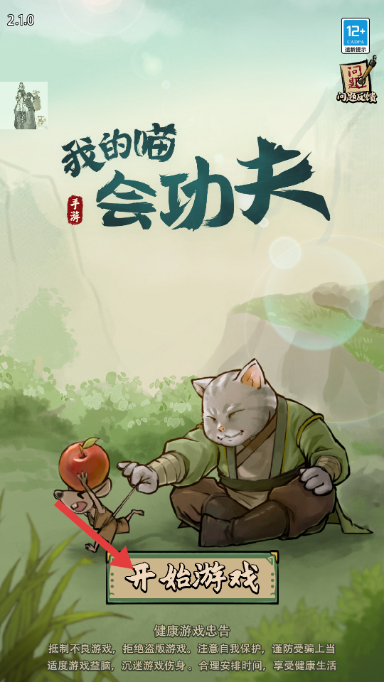 1、点击开始游戏,进入游戏开启功夫猫咪的冒险之旅。