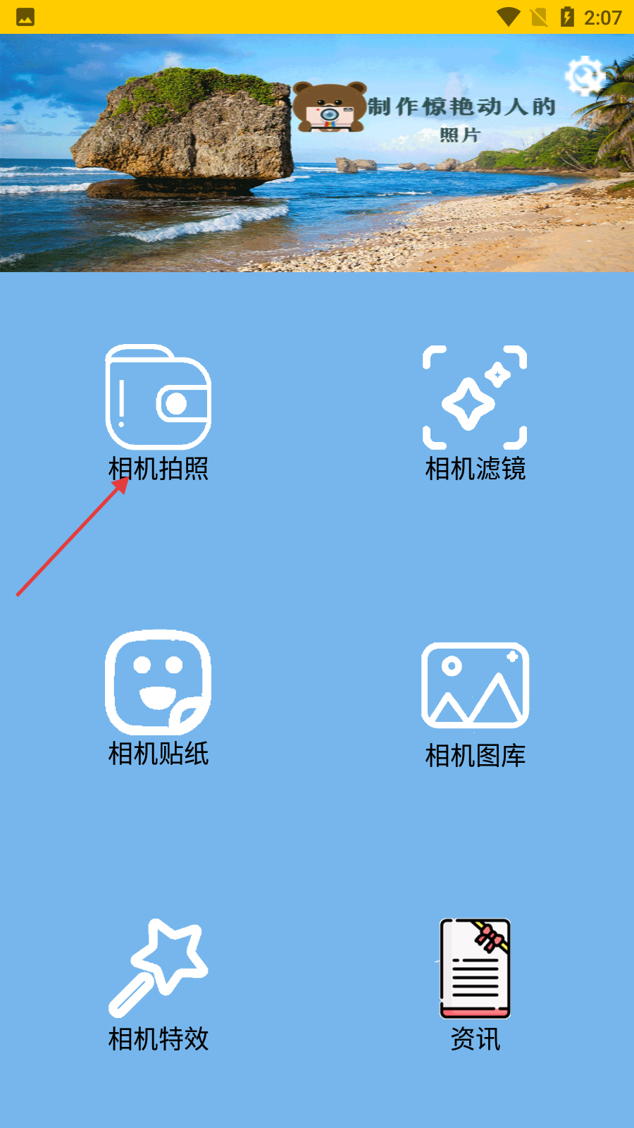 2、在功能选择界面,点击【相机拍照】选项,可进入相机拍摄界面。