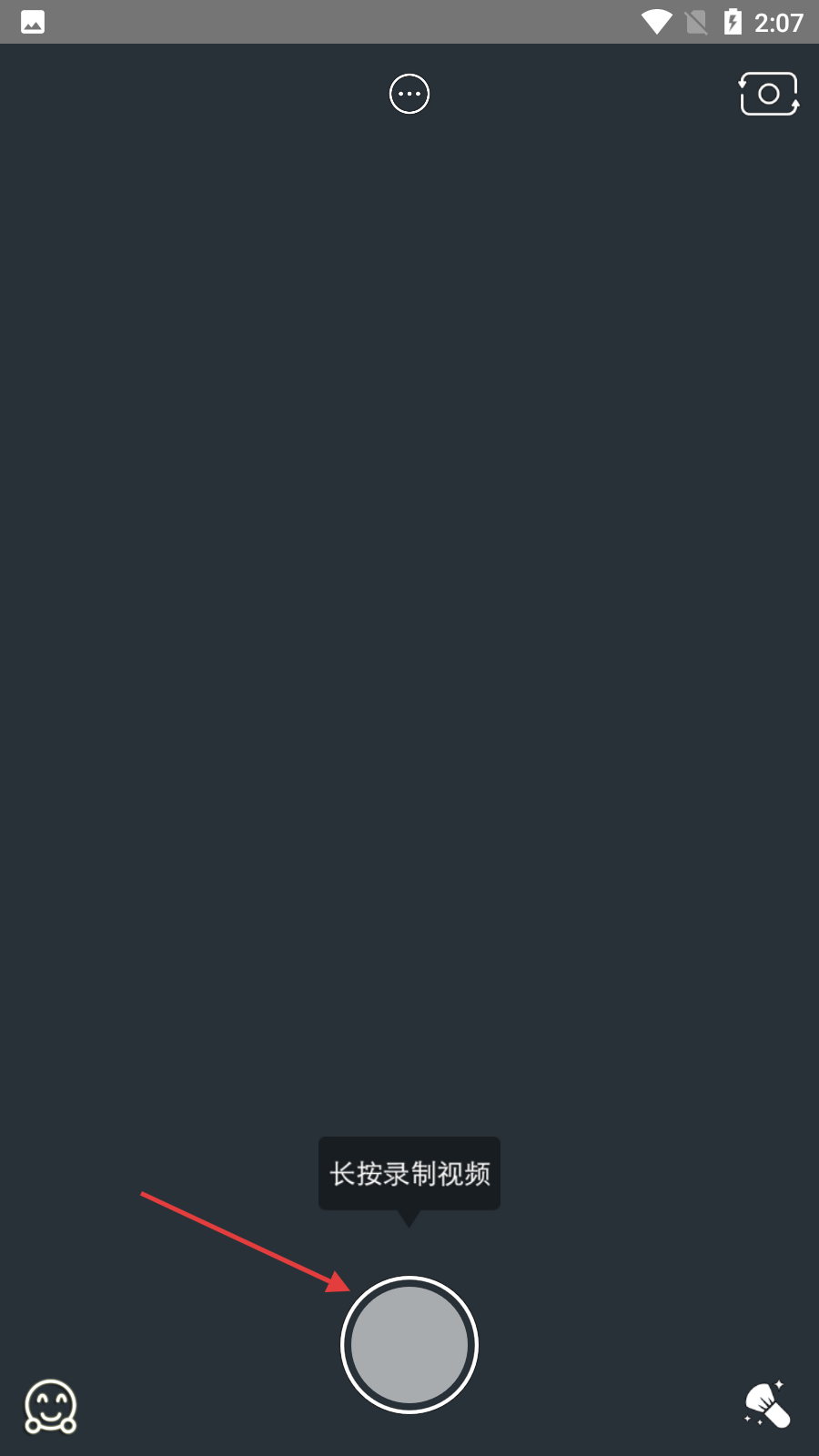 3、在相机拍摄界面,可点击拍摄按钮拍照,或长按拍摄按钮录制视频。