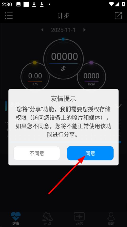 4、使用分享功能前,需【同意】存储权限,否则无法正常使用分享功能。