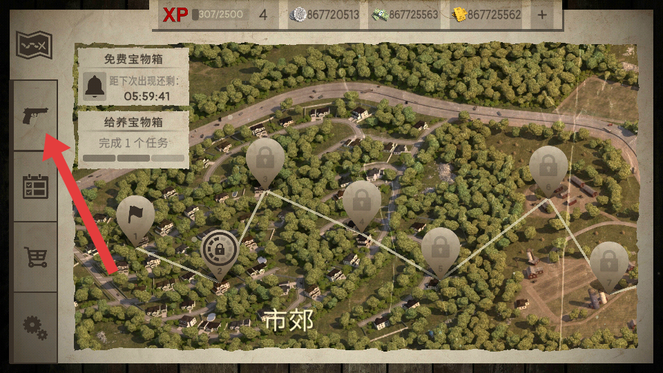 1、点击左侧枪械图标,进入武器界面,可查看和管理当前拥有的武器。