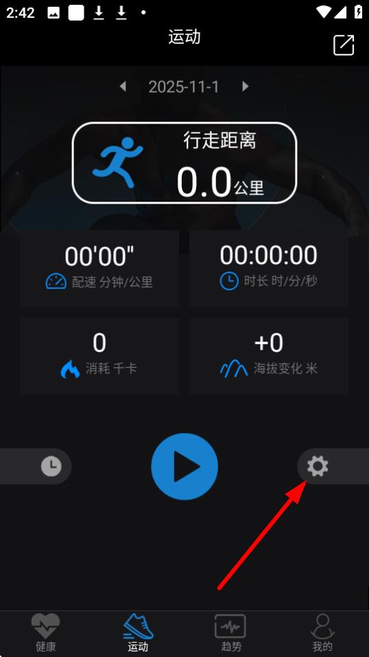2、在【运动】页面,点击右侧齿轮【设置】图标可进入运动设置界面。