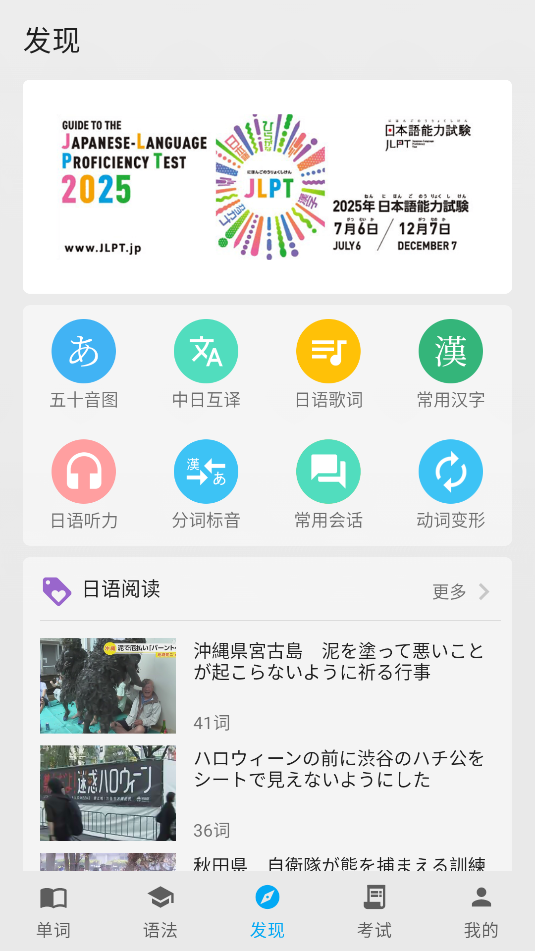 日语学习君是覆盖全阶段的日语学习工具,以清晰路径助力学习。从五十音图起步,搭配真人发音与笔顺动画,夯实入门基础。内置丰富词库,涵盖考试、教材等各类词汇,按科学记忆曲线安排复习。语法解析通俗易懂,搭配例句与分词标注;海量听力、阅读素材同步呈现原文与翻译,无缝对接词典查询。收录多类考试真题,支持刷题、错题强化与试题收藏。中日互译、常用汉字、应急会话等实用工具一应俱全,满足不同场景学习需求,让日语学习高效便捷。