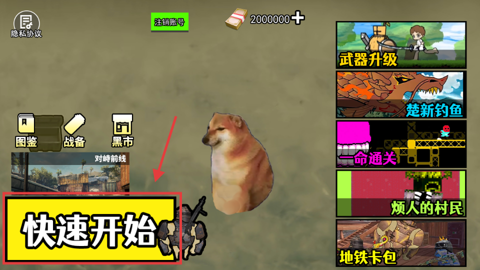 1、点击【快速开始】按钮可直接进入游戏,开启狗狗的射击冒险突围之旅,无需复杂操作快速开局。