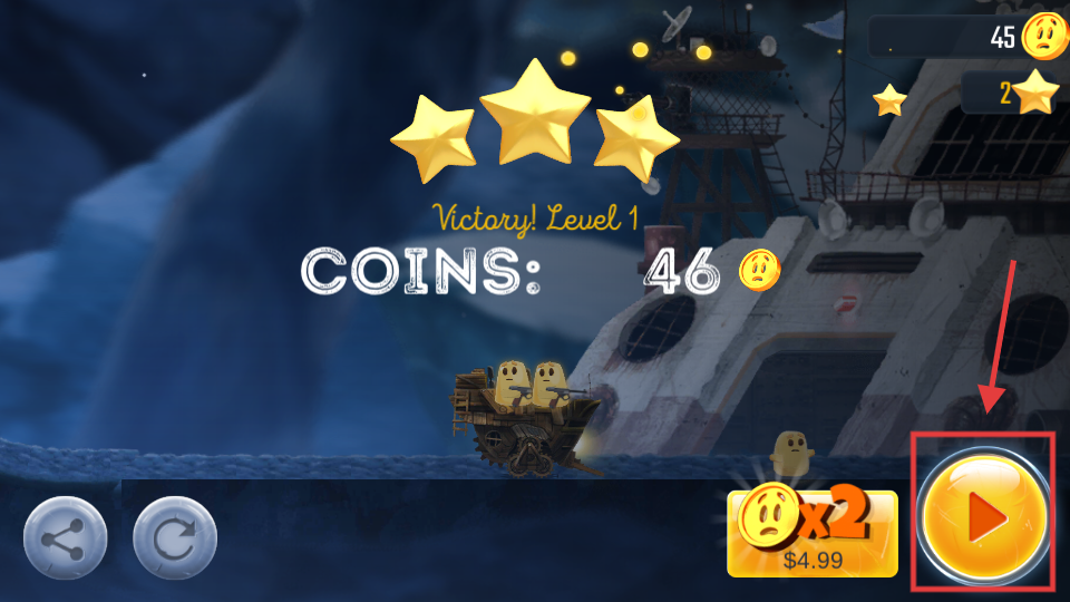 4、关卡胜利后,点击右下角【播放】按钮,进入下一关继续挑战。
