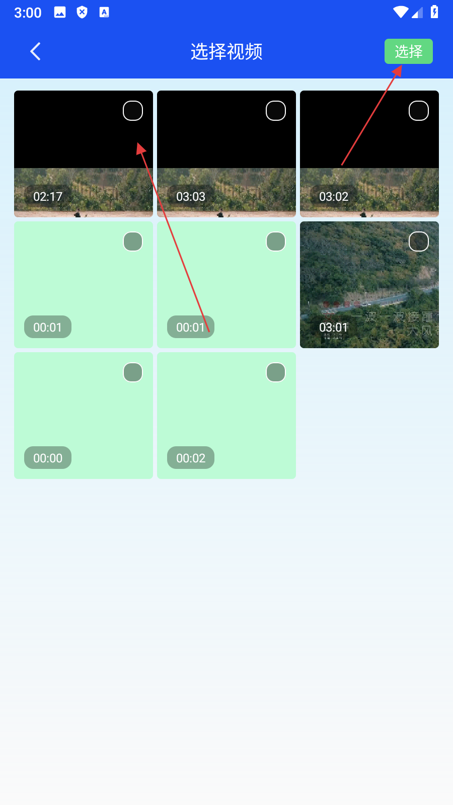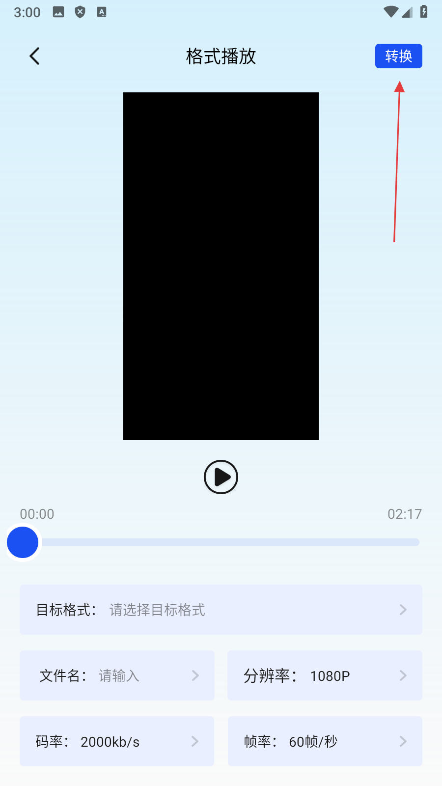 3、在视频选择页面【选择目标视频】后点击【选择】,进入格式播放设置页面。