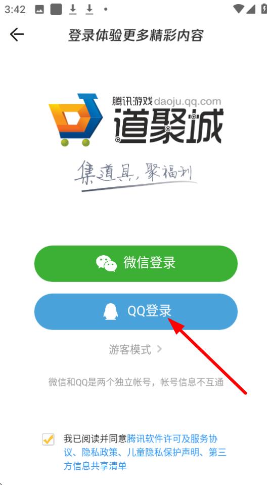 3、在道聚诚登录页,可选择【QQ登录】来体验更多内容。