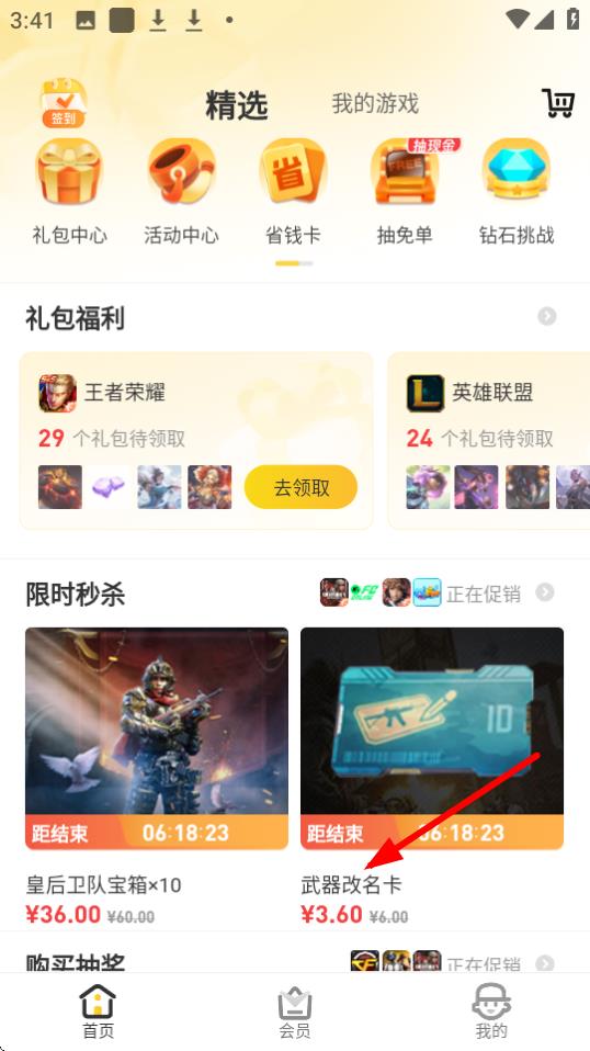 1、在首页【限时秒杀】区域,可点击【武器改名卡】参与秒杀。