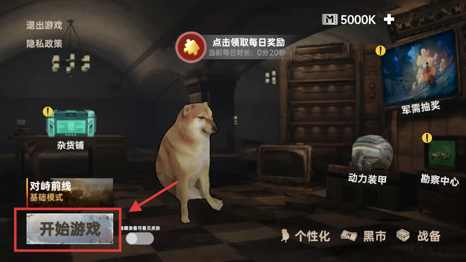 1、点击【开始游戏】进入【对峙前线-基础模式】,准备探索地图,收集物资枪械,应对敌人。