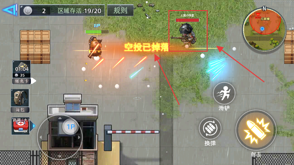 3、【空投已掉落】时,火速击败【人面小怪兽】抢物资,留意存活数,灵活战斗保资源。